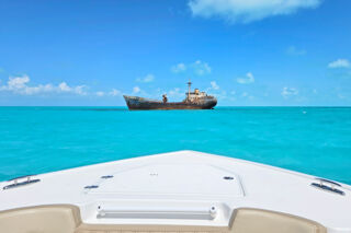 The tiny Invincible freighter near Molasses Reef and West Caicos is a wreck that sits on a shallow reef and shoal. It supports a large number of seabirds.