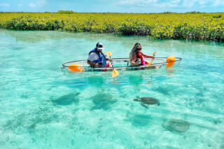 Clear kayaks rentals and tours are available at several locations on Providenciales, including at Leeward near Mangrove Cay and at the Bight Reef snorkeling site. Clear kayaks allow you to have a view of what’s happening in the water below, and it’s possible to see starfish, conch, fish, stingrays, turtles, jellyfish, and sharks.